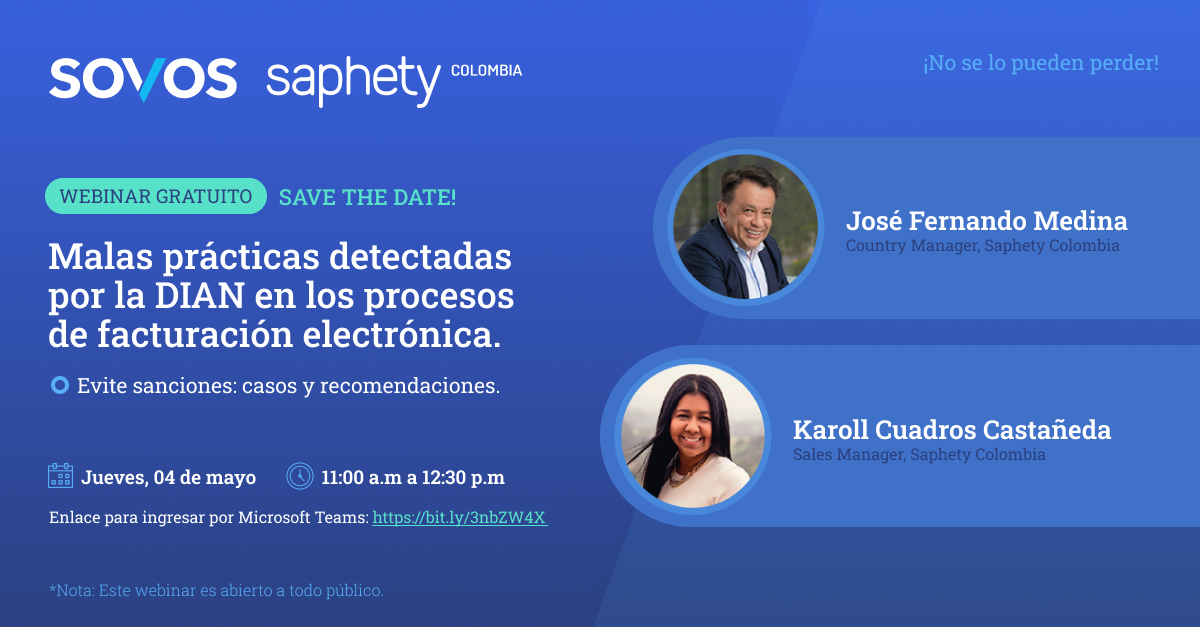 - Karoll Cuadros, Sales Manager de Saphety Colombia, es comunicadora social con Magister en Negocios Digitales. Cuenta con más de 10 años de experiencia en el sector de colaboración electrónica y tecnologías de la información. Actualmente, lidera el proceso de Aliados estratégicos de Saphety Colombia.