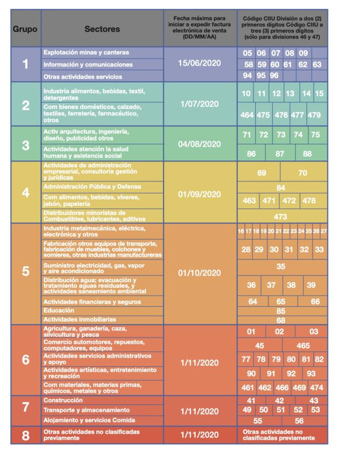 A continuación, dejamos el calendario con los sectores donde se agrupa por actividad de acuerdo al código CIIU. Recuerde, son los dos (2) o tres (3) primeros dígitos de su actividad comercial, de izquierda a derecha. Somos Saphety, le acompañamos en el proceso de registro y habilitación, y soportamos los cambios en la normativa de la DIAN.