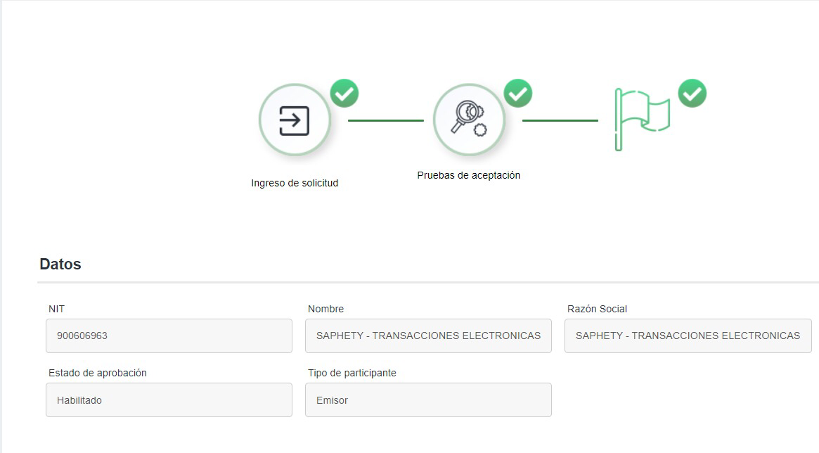 Saphety como participante de esta prueba piloto, cumple con dichos requisitos y ya ha pasado las pruebas de Habilitación en el ambiente de Pruebas de la DIAN.