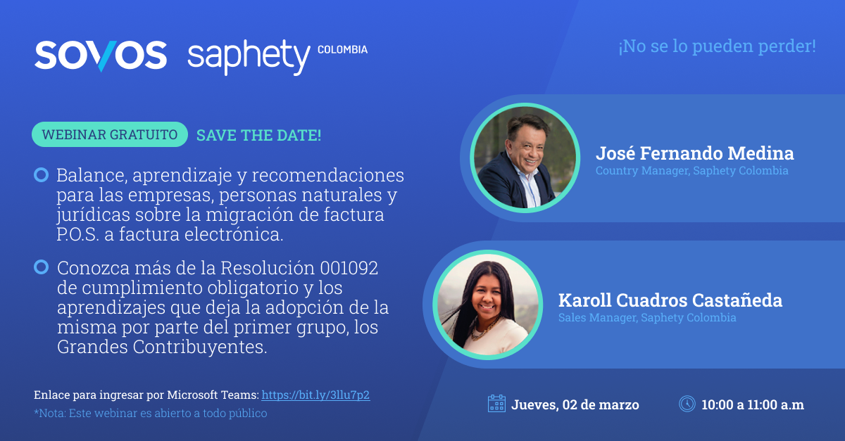 El webinar está dirigido a todas las empresas y persona naturales y jurídicas que deban implementar el calendario reglamentado en la resolución 001092, regulando la obligatoriedad de emitir factura electrónica cuando un documento tipo POS supere las 5 UVT, $(212.060).